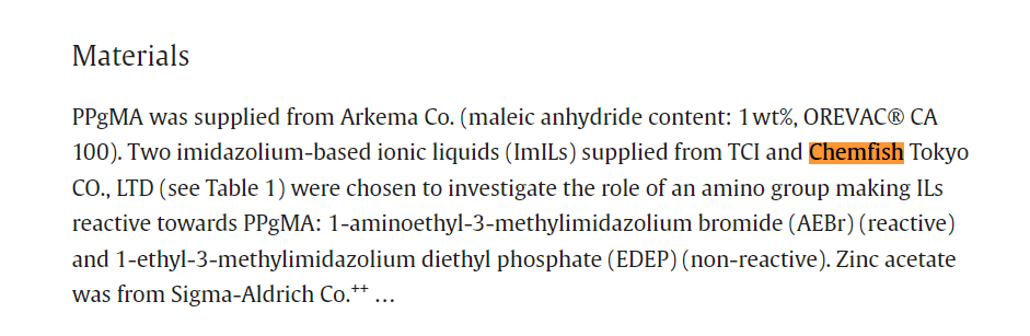 ChemFish 作為全球領先的離子液體供應商,始終致力于為科研與工業界提供高性能化學品。其產品已廣泛應用于高分子材料、催化和新能源領域,此次研究進一步驗證了其在先進聚合物加工中的關鍵作用。