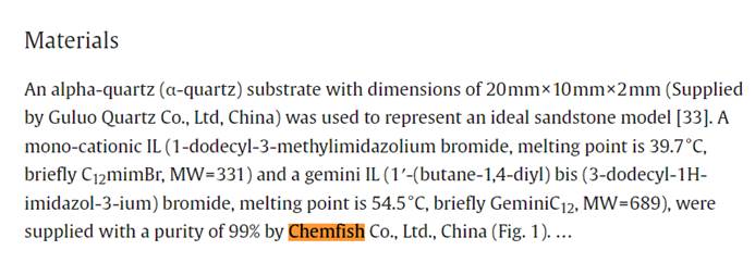 CHEMFISH 的高純度 IL 產品為上述機制研究提供了可靠的物質基礎,其穩定的化學結構和可控的烷基鏈設計,為后續開發適配不同油藏條件的高效驅油劑奠定了基礎。