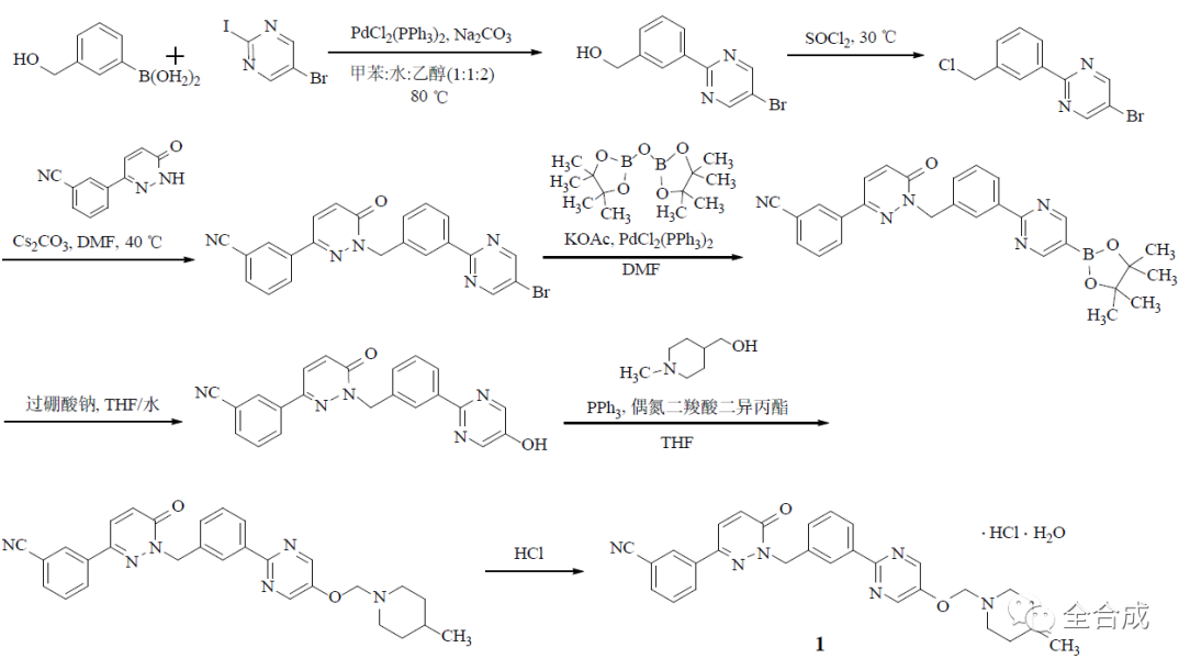 化學(xué)名:3-(3- 氰基苯基) -1-[[3-[5-[(4-甲基哌啶-1-基) 甲氧基] 嘧啶-2-基] 苯基] 甲基]-1,6-二氫噠嗪-6-酮鹽酸鹽水合物。