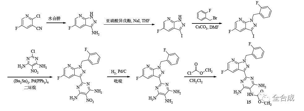 化學(xué)名:3-(5- 甲氧基羰基氨基-4,6- 二氨基嘧啶-2- 基)-5- 氟-1-(2- 氟芐基)-1H- 吡唑并[3,4-b]-吡啶。